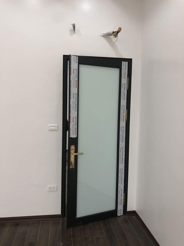– Cửa vệ sinh: Là loại cửa dùng cho các phòng vệ sinh, thường sử dụng kính dán trắng sữa hoặc kính phun cát mờ để ngăn việc nhìn xuyên qua cửa